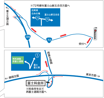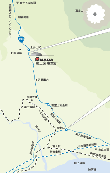 富士IC→西富士道路→国道139号線(約25分)上井出ICより3分。